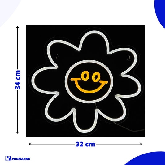 Neon Lamp - Smiley Bloem - Incl. Ophanghaakjes - Neon Sign - 34 x 32 cm