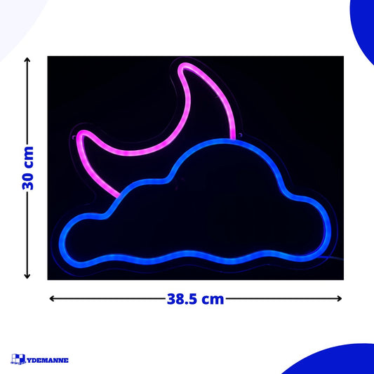 Neon Lamp - Wolk Maan - Incl. Ophanghaakjes - Neon Sign -30 x 38.5 cm
