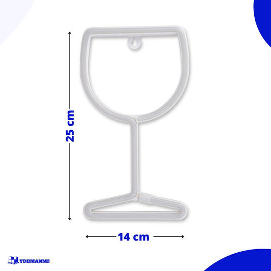 Neon Lamp - Wijnglas Blauw - Incl. 3 Batterijen - 25 x 14 cm