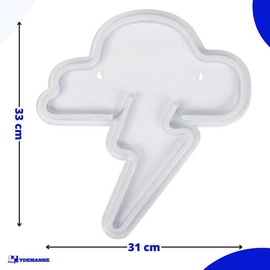 Neon Lamp - Wolk Bliksem Blauw / Geel - Incl. Ophanghaakjes - Neon Sign - 33 x 31 cm