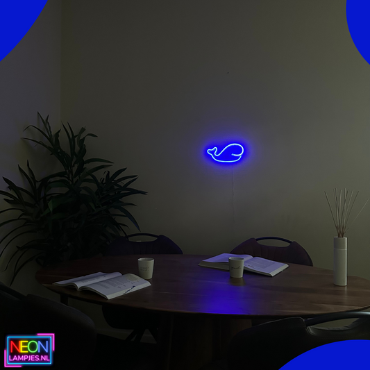 Neon Lamp - Walvis Blauw - Incl. 3 Batterijen - 15 x 28 cm