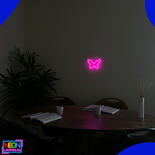 Neon Lamp - Vlinder Roze - Incl. 3 Batterijen - 16 x 23 cm