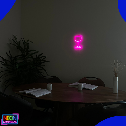 Neon Lamp - Wijnglas Roze - Incl. 3 Batterijen - 25 x 14 cm