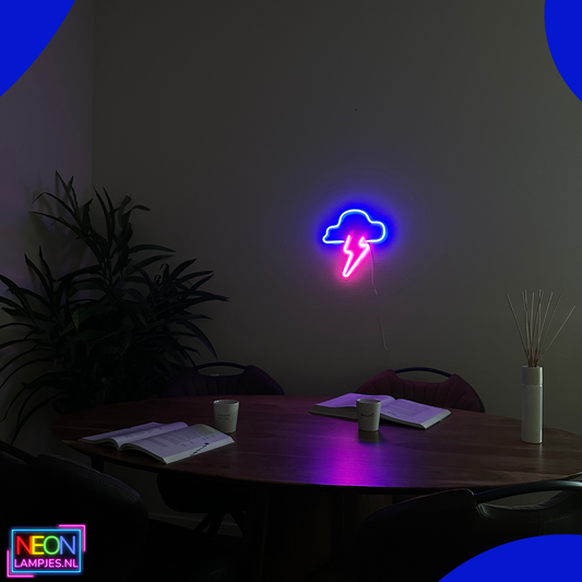Neon Lamp - Wolk Bliksem Blauw / Roze - Incl. Ophanghaakjes - Neon Sign - 33 x 31 cm