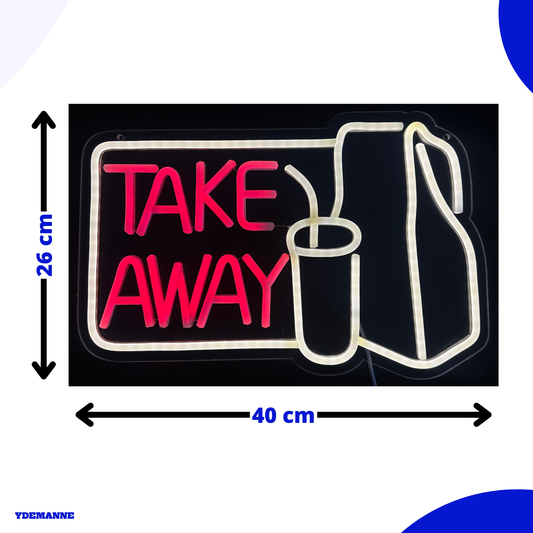 Neon Lamp - Take Away - Restaurant - Incl. Ophanghaakjes - Neon Sign - 26 x 40 cm