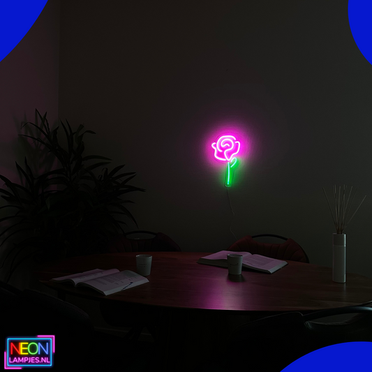 Neon Lamp - Roos - Incl. Ophanghaakjes - Neon Sign - 38 x 23 cm