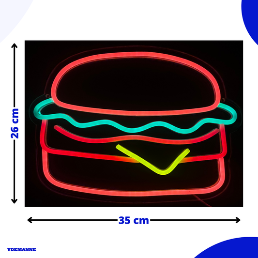 Neon Lamp - Hamburger - Incl. Ophanghaakjes - Neon Sign - 31 x 31 cm