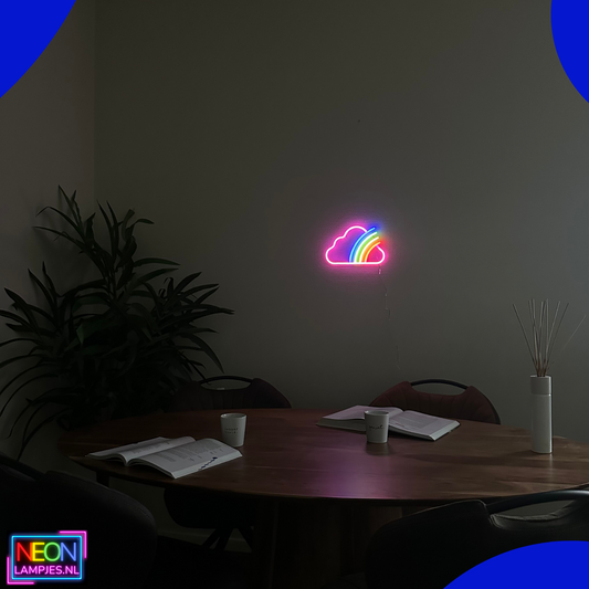 Neon Lamp - Wolk Roze Regenboog - USB of Batterijen - 26 x 30 cm