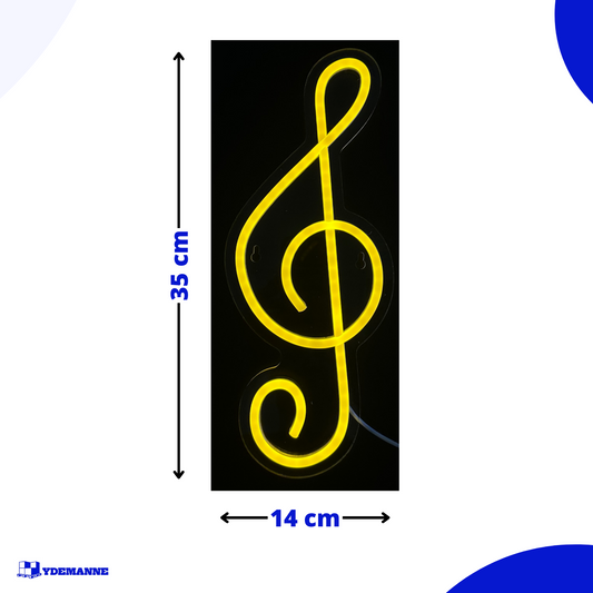 Neon Lamp - Muzieknoot Geel - Incl. Ophanghaakjes - Neon Sign - 35 x 14 cm