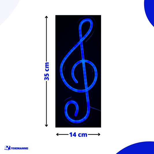 Neon Lamp - Muzieknoot Blauw - Incl. Ophanghaakjes - Neon Sign - 35 x 14 cm