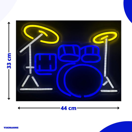 Neon Lamp - Drumstel - Muziek - Dimbaar - Incl. Ophanghaakjes - Neon Sign - 33 x 44 cm