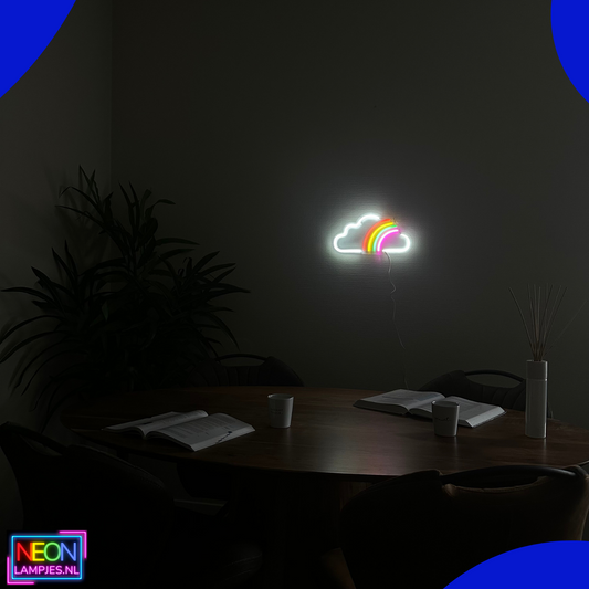 Neon Lamp - Wolk Regenboog - Incl. Ophanghaakjes - Neon Sign - 19 x 38 cm