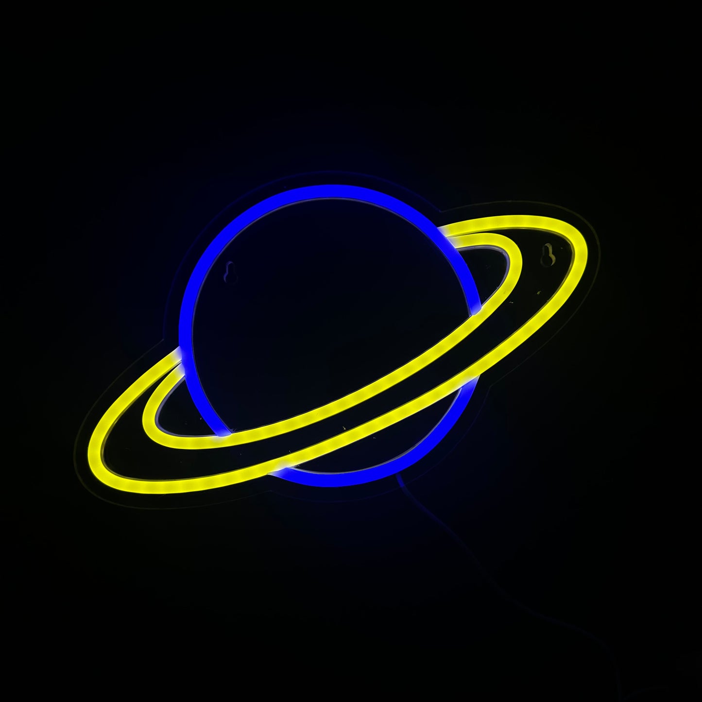 Neon Lamp - Planeet Blauw / Geel - Incl. Ophanghaakjes - Neon Sign - 20 x 34 cm